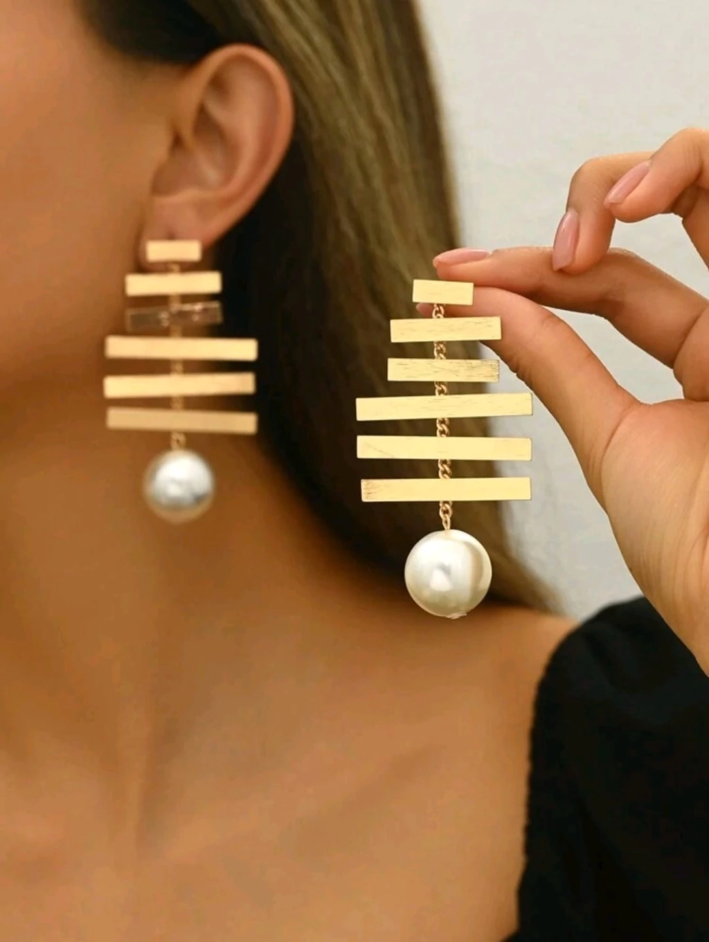 Brinco placas e pérola