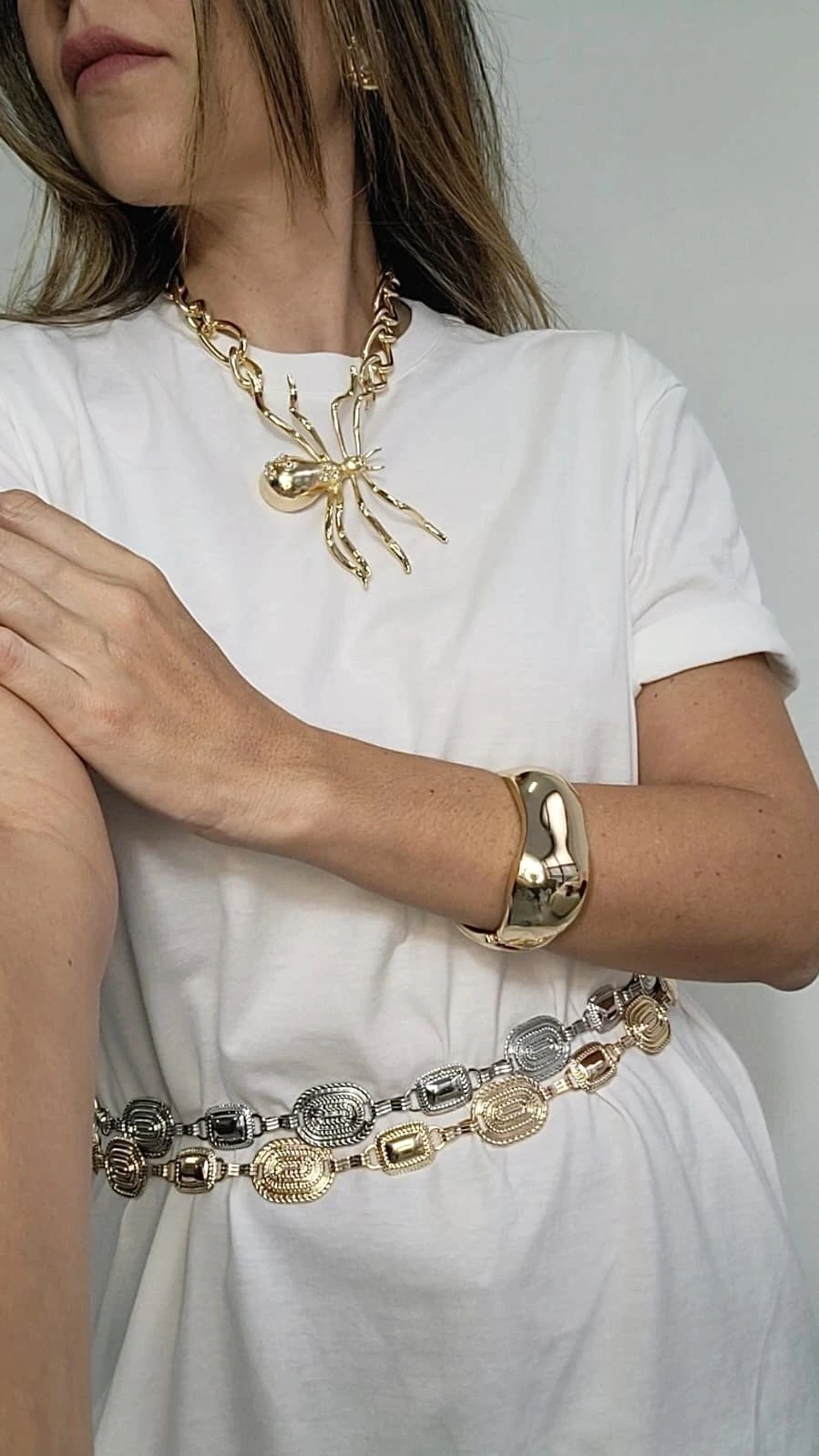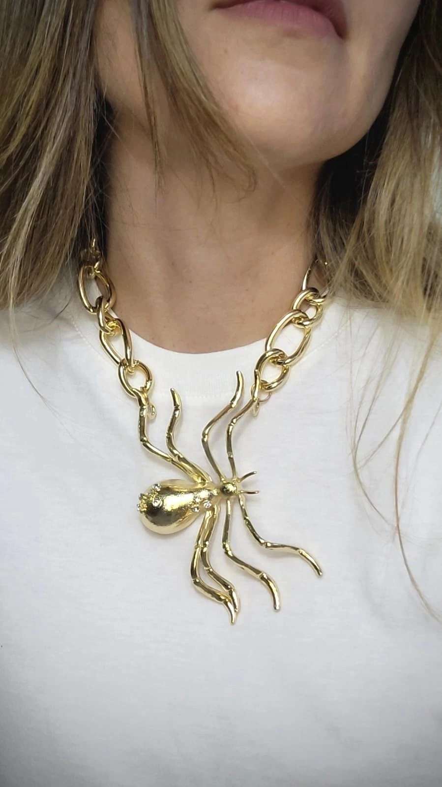 Colar de metal dourado com maxi pingente aranha. Com detalhes de zircônia.