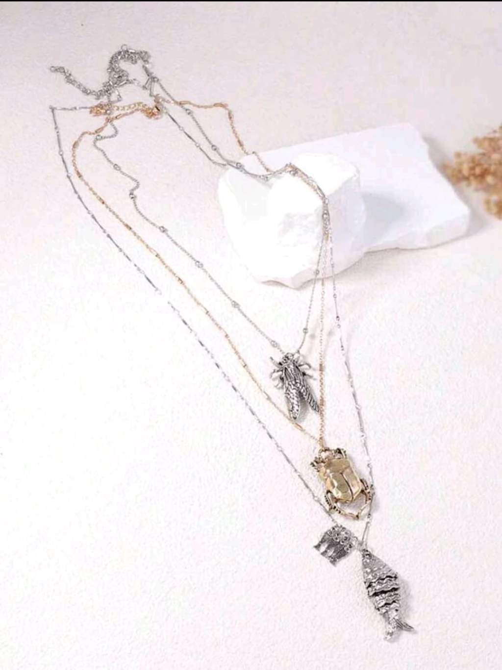 Transforme seu estilo com o Colar Triplo Insetos e exiba uma beleza única e cheia de personalidade!