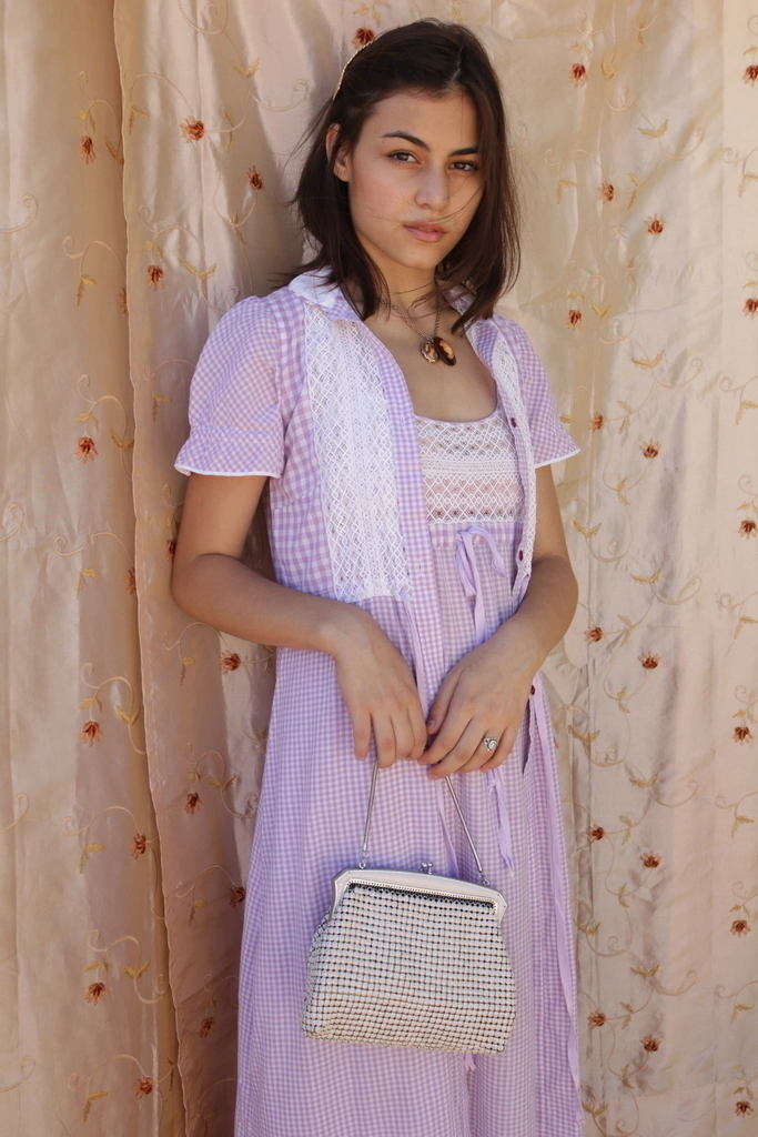 Maravilhoso conjunto de camisola e penhoar vintage longos xadrez com detalhes de rica renda de algodão, as duas peças podem ser usadas separadamente como vestido. Em perfeito estado. Tecido algodão.