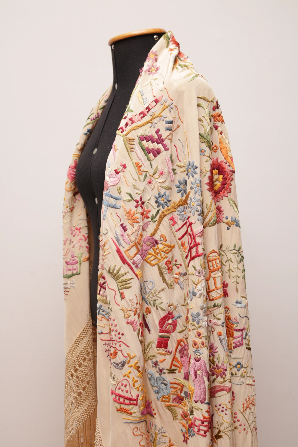 Alerta super raridade!! Manta/manto de seda anos 30 completamente bordado e trabalhado à mão com símbolos provavelmente chineses. Pode ser usado de várias formas como vestimenta ou na decoração. Incrível!!! Tamanho generoso, em excelente estado, possui algumas pequenas machinhas amarelas do tempo, quase imperceptiveis. Sem avaria.
