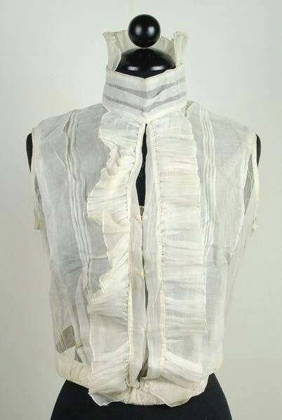 Raridade de museu... Plastron(peitoral) francês, antiguidade séc. XIX, acessório usado sob vestimenta como gola ou acabamento para traje completo, feita em tecido algodão com detalhes em preciosa renda e costas em tule, foi higienizado e adaptado com fitas de cetim para fechamento nas laterais e pescoço, possui algumas manchinhas amareladas mas pra uma peça que tem mais de 120 anos de história está em excelente estado ainda própia pra uso!