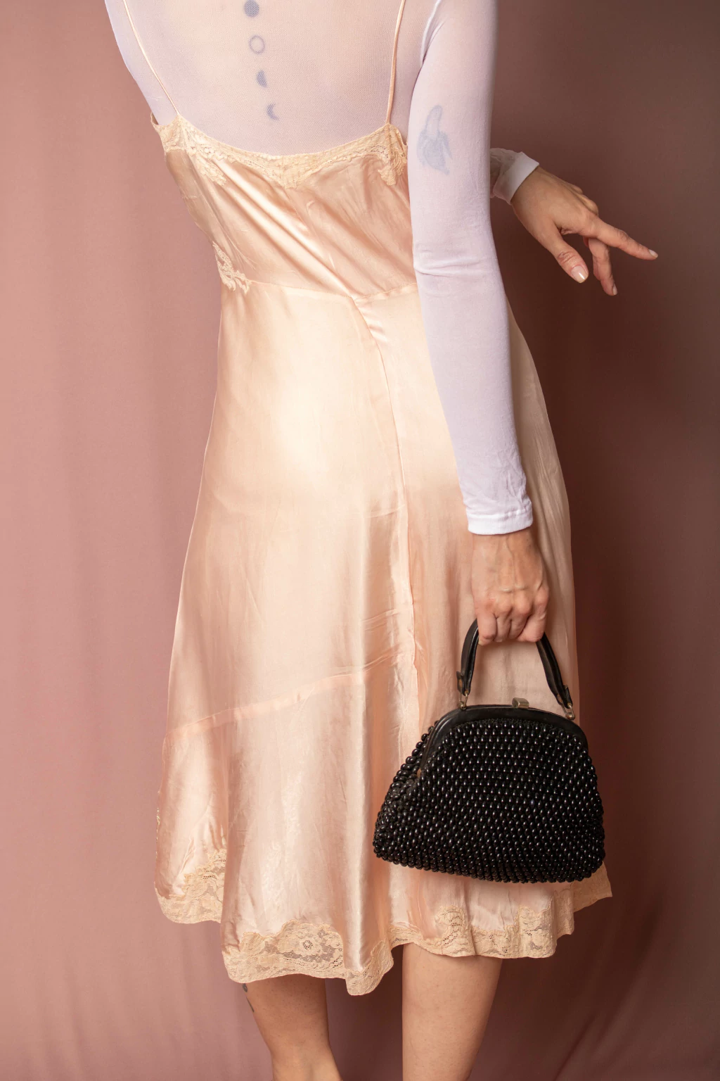 Raridade! Slip dress de seda pura anos 50/60 todo trabalhado com ricos bordados e aplicação de rendas francesas, tudo feito manualmente! Peça rara em excelente estado de conservação! Possui pequeno reparo, vide foto.